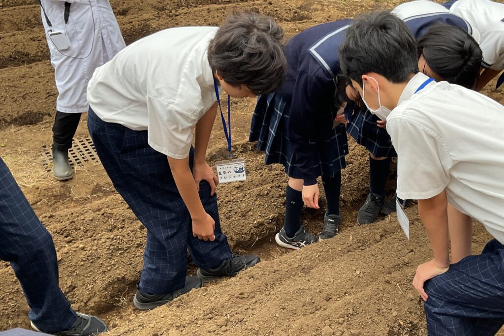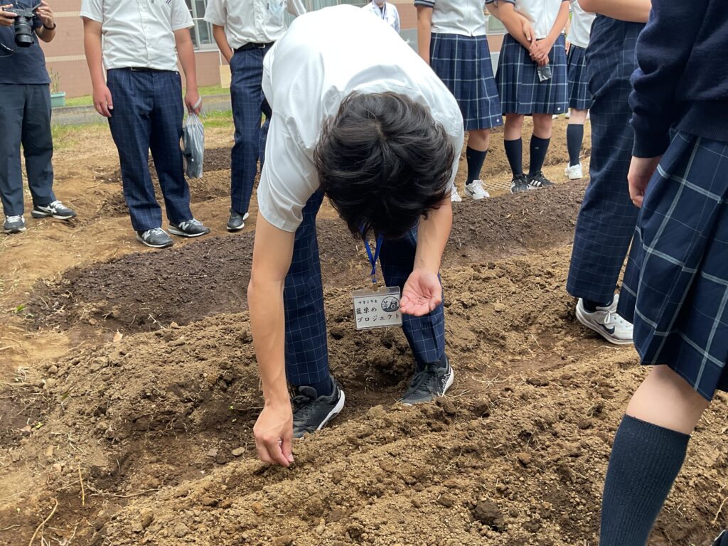 種まきは藍染めリーダーたちが事前に準備を進め、当日クラスメイトにまき方のコツを伝えたり、サポートをしながら進めていきました。
