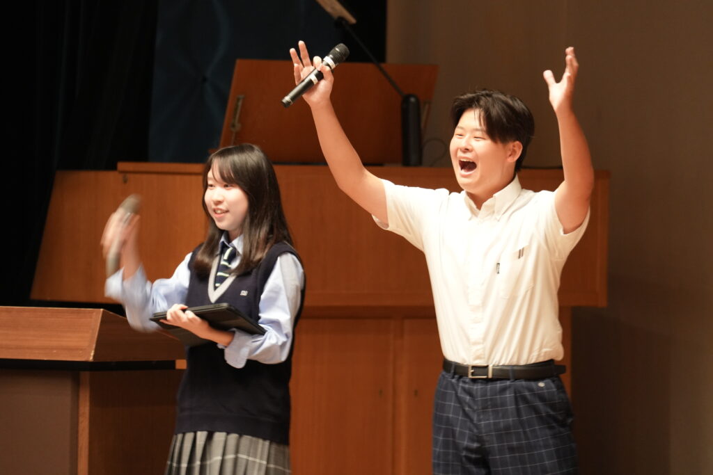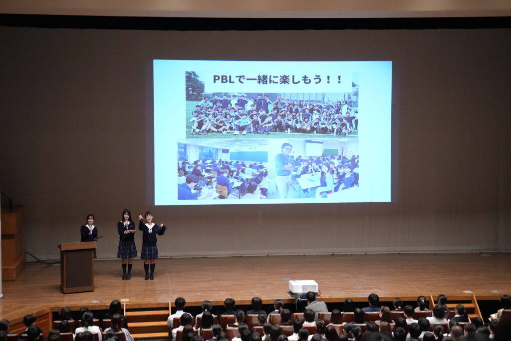 当日は校長挨拶、本校の教育ビジョンについての説明後、生徒たちによる各コース(ハイグレードコース・PBLインターナショナルコース・本科コース)のプレゼンを行いました。