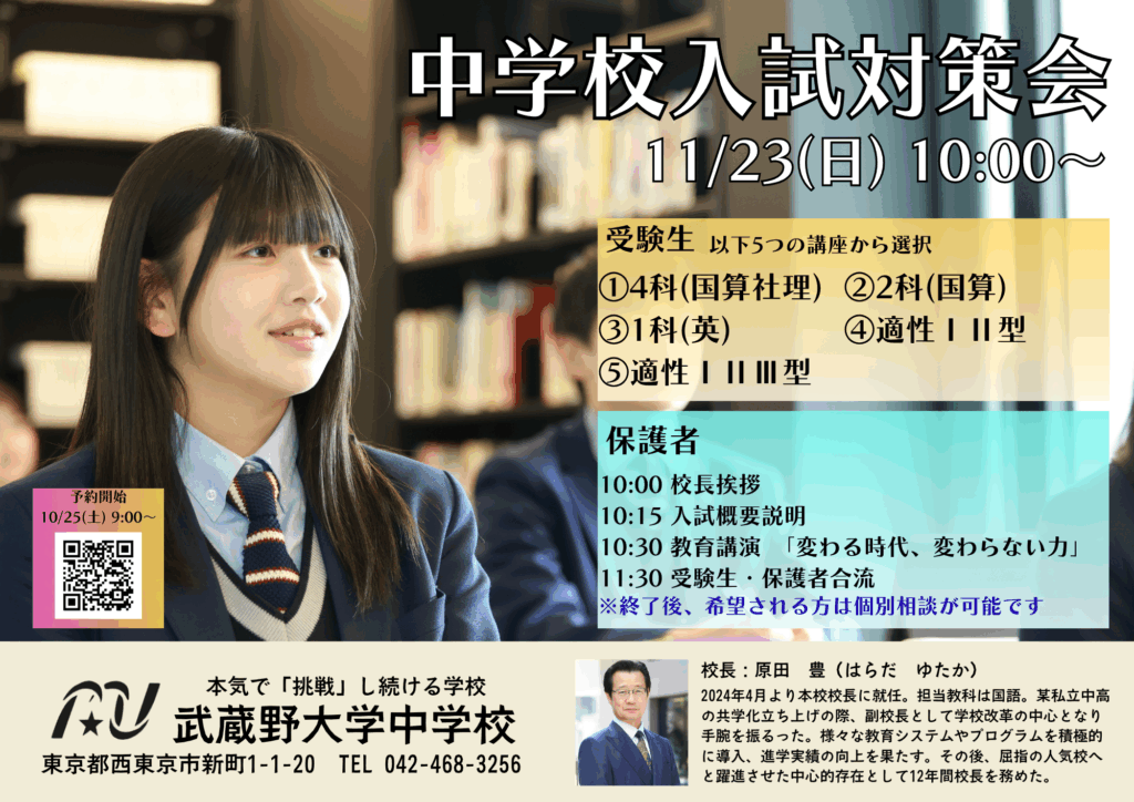 【10月25日予約開始】11月23日(祝・日)「中学入試対策会」