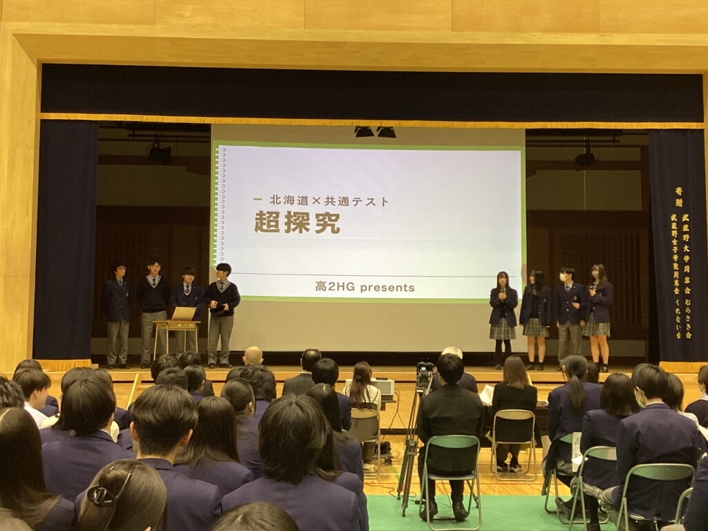 「Mu-1グランプリ」は、今年1年間で行われた探究活動の総まとめの行事であり、中学1年生~高校2年生の代表者が全校生徒に向けて探究活動の発表を行うものです。