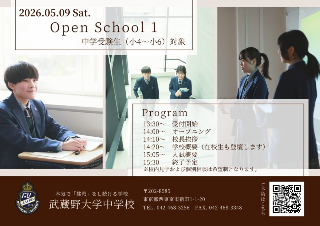 第1回中学オープンスクール 5/9(土)14:00~